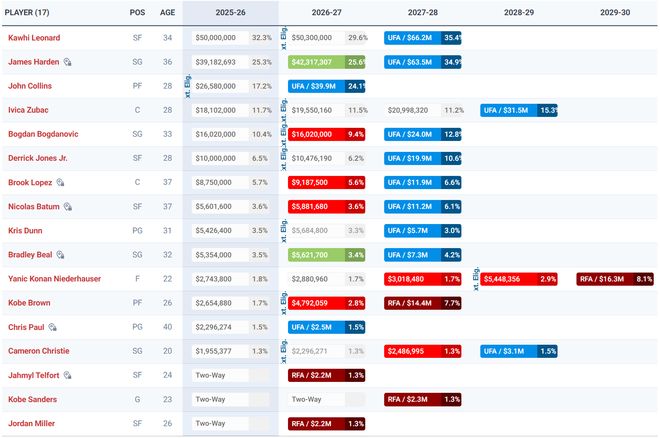 此役快船的主力輪換,年齡結構是一個熱點話題:哈登36歲、小卡34歲、科林斯28歲、祖巴茨28歲、比爾32歲、大洛37歲、鄧恩31歲、保羅40歲、瓊斯28歲、巴圖姆37歲,這主力10人輪換實際上平均年齡達到33.1歲。