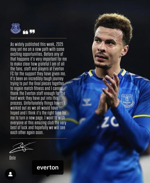 “試圖把最后的部分拼湊起來(lái)以恢復(fù)比賽的狀態(tài)并不是一件容易的事情,我非常感謝埃弗頓的工作人員在這一過(guò)程中的辛勤付出。不幸的是,事情并沒(méi)有按照期望的方向去發(fā)展,我認(rèn)為現(xiàn)在是我翻開(kāi)新篇章的合適時(shí)機(jī)。在此,我想祝俱樂(lè)部的每一個(gè)人好運(yùn),希望我們很快能夠再次見(jiàn)面。”